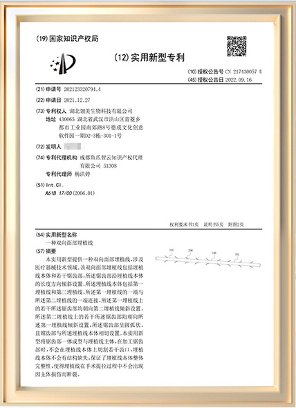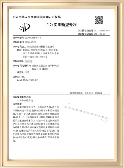 • 目前已注册专利数量13件。其中发明专利8件,实用新型专利5件。